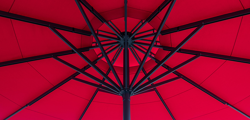 Vielfältige Verschattungslösungen für die Außengastronomie und Hotellerie sind das Spezialgebiet von Caravita, dem Schirmspezialisten der Warema Group. Der neue Großschirm Grande bildet ein schützendes Dach über einer Fläche von bis zu 80 qm und sorgt für eine harmonische Optik der Gastro-Fläche bei minimalem Platzverbrauch für den Fuß.