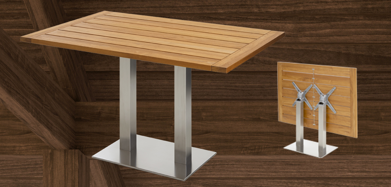 "Wir stehen den Gastro-Kunden im gesamten Planungsprozess bei der Gestaltung von Außenflächen zur Verfügung", so die Botschaft bei Niehoff Garden. Das Warendorfer Unternehmen bietet dazu eine Reihe an hochwertigen Möbeln wie die Tischfamilie BISTRO, die es in verschiedenen Größen und Materialkombinationen gibt. Ein Musterbeispiel ist der Esstisch mit einer Doppel-Edelstahlsäule und einer rechteckigen Platte aus massivem Teakholz.