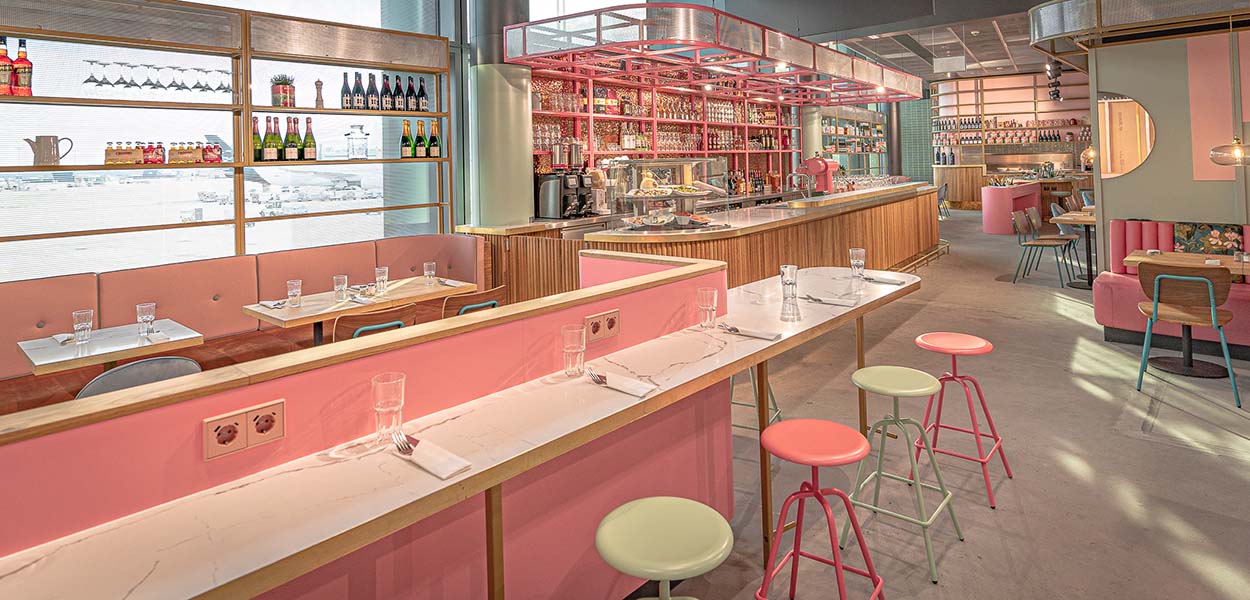 Kurzurlaub in Rimini: Das neue Restaurant der Gastro-Profis von tellerrand consulting bietet am Frankfurter Flughafen Dolce Vita ganz wie an der italienischen Adria. Im „Pezzo di Pane" genießt man das bonbonbunte Lebensgefühl von Bella Italia pur wie in den 1960er-Jahren bei hausgemachten Pinsas, frischen Salaten und natürlich Pasta wie aus Nonnas Küche.