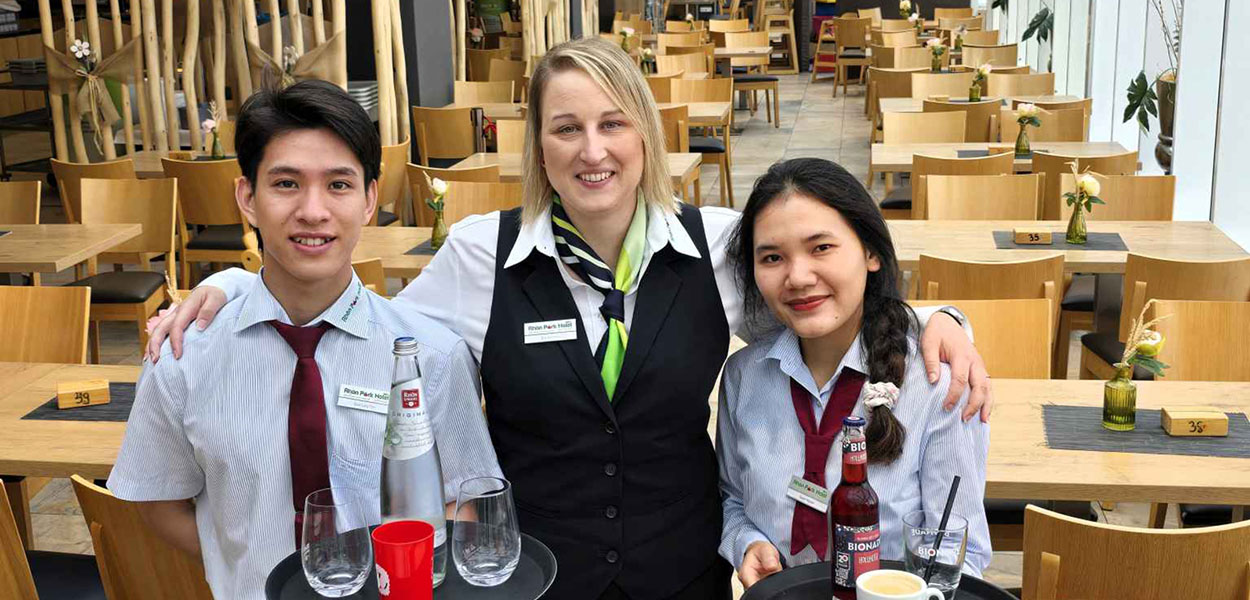 Der 23-jährige Long Tran Quoc und die 25-jährige Thi Nguyen aus Vietnam, beide wohnhaft im Resort in Hausen-Roth, haben ihre dreijährige Ausbildung zur Fachkraft für Gastronomie mit Schwerpunkt Restaurant erfolgreich abgeschlossen. Die Prüfung fand im Sommer 2025 statt. Sie setzen nun ihre Laufbahn in der Hotellerie fort und bleiben dem Rhön Park Aktiv Resort als Fachkräfte erhalten.