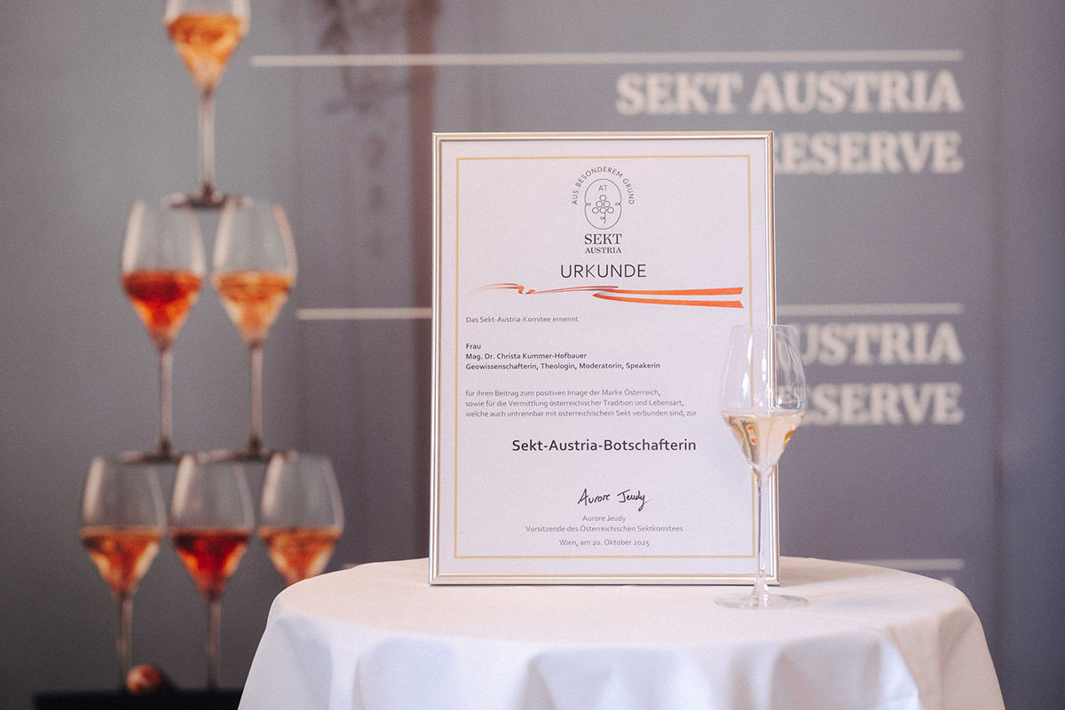 Am 22. Oktober feierte Österreich den Tag des Sekt Austria – den offiziellen Auftakt in die umsatzstärkste Zeit des Schaumweinjahres. Aus diesem Anlass zog das Sekt-Austria-Komitee im Rahmen seiner Jahrespressekonferenz Bilanz und präsentierte mit Dr. Christa Kummer-Hofbauer, der langjährigen Moderatorin der Wetterredaktion im ORF, eine neue Sekt-Austria-Botschafterin.