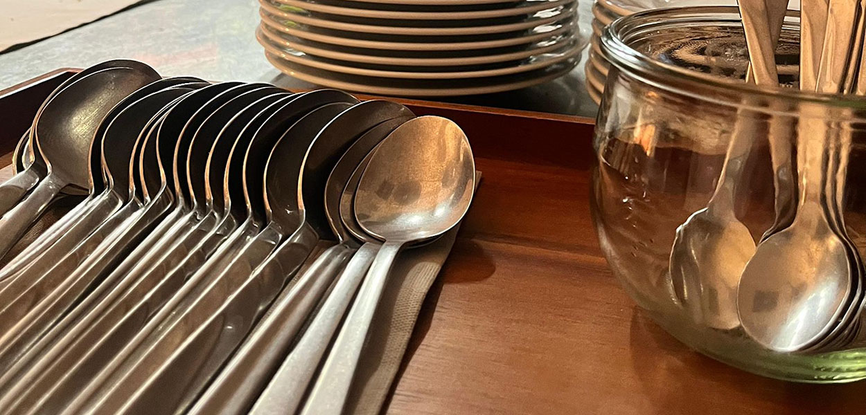 Auch im Restaurant des Zeppelin Museums weichen Tischdecken bewusst puristischen Elementen. Stattdessen setzt Tress auf hochwertige Akzente wie Besteck, Geschirr und echtes Holz. "Nachhaltigkeit und Genuss schließen sich nicht aus. Im Gegenteil – das Besteck macht das Erlebnis unserer Gäste erst rund", so Tress. Material und Haptik spielen dabei für den Sternekoch eine zentrale Rolle. Gerade weil er den Fokus am Tisch auf den Genuss legt, ist ihm ein hochwertiges Handgefühl überaus wichtig. WMF Second Life fasst er entsprechend in drei Worten zusammen: "Perfekt, weil unperfekt."