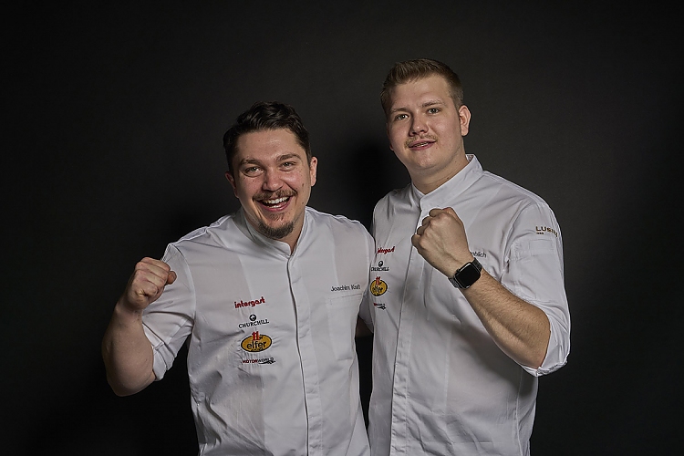 Erster Platz: Aljoscha Knoblich (r.), Souschef, Restaurant Jellyfish*, Hamburg mit Assistent Joachim Kraft, Junior Sous Chef, Restaurant Jellyfish*, Hamburg
